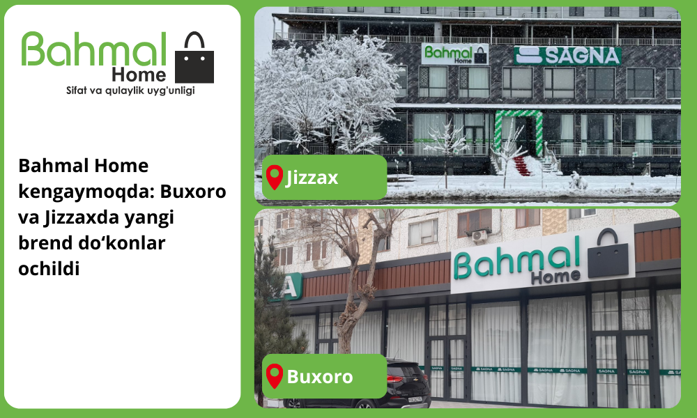 Biz xaridorlarimizga qulay xarid muhiti, barqaror sifat va zamonaviy yondashuvni taklif etish uchun doimiy rivojlanib boramiz. Buxoro va Jizzax aholisi hamda mehmonlarini Bahmal Home do‘konlariga tashrif buyurishga taklif qilamiz.